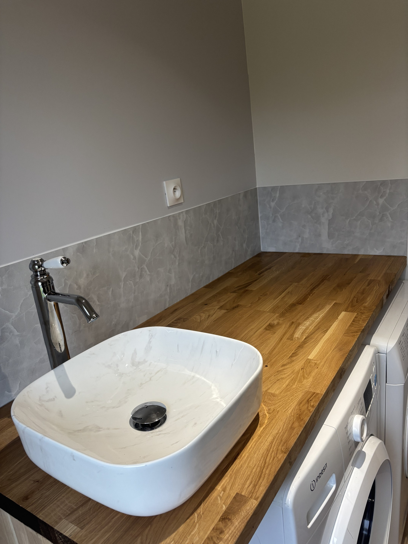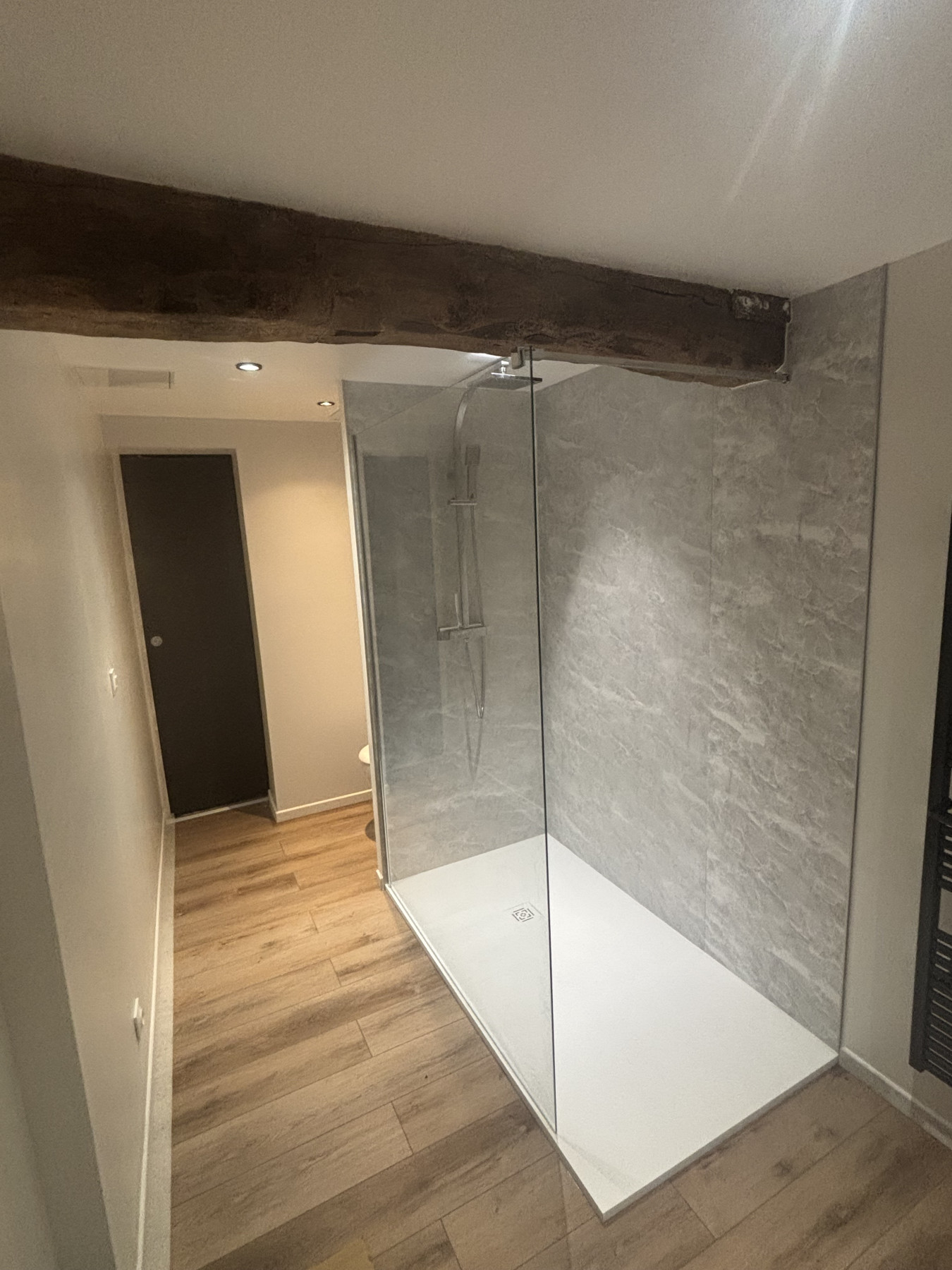 Les travaux ont inclus la création intégrale de la plomberie, la pose de plaques de plâtre avec une parfaite isolation, ainsi que la réalisation du sol, alliant esthétique et durabilité.
