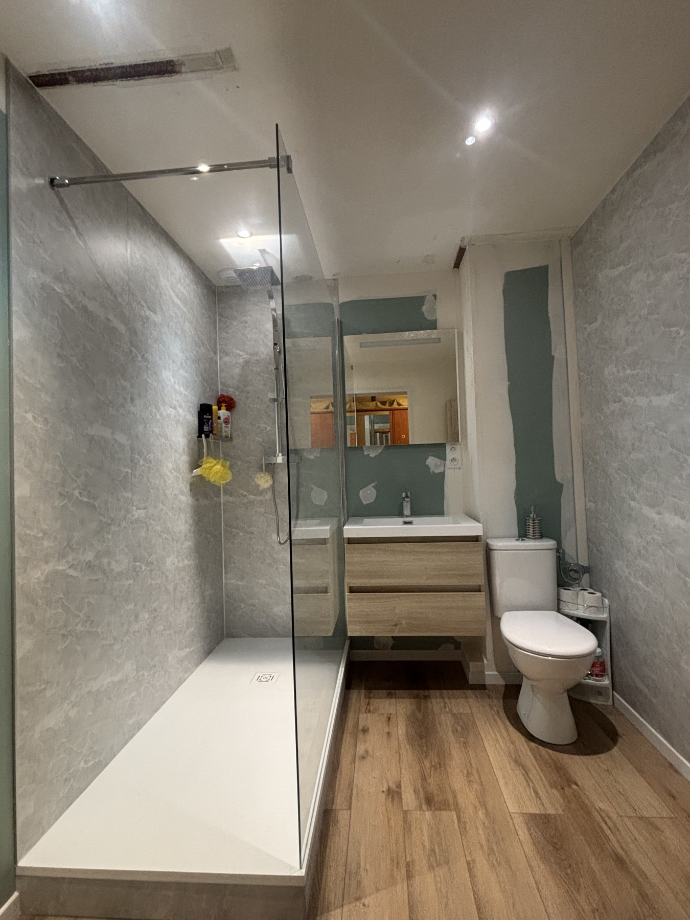 Damplomberie a Doudeville 76560 a réaménagé complètement une salle de bain avec un wc a Saint Laurent En Caux 76560 pour transformé un espace en un cocon fonctionnel et esthétique.