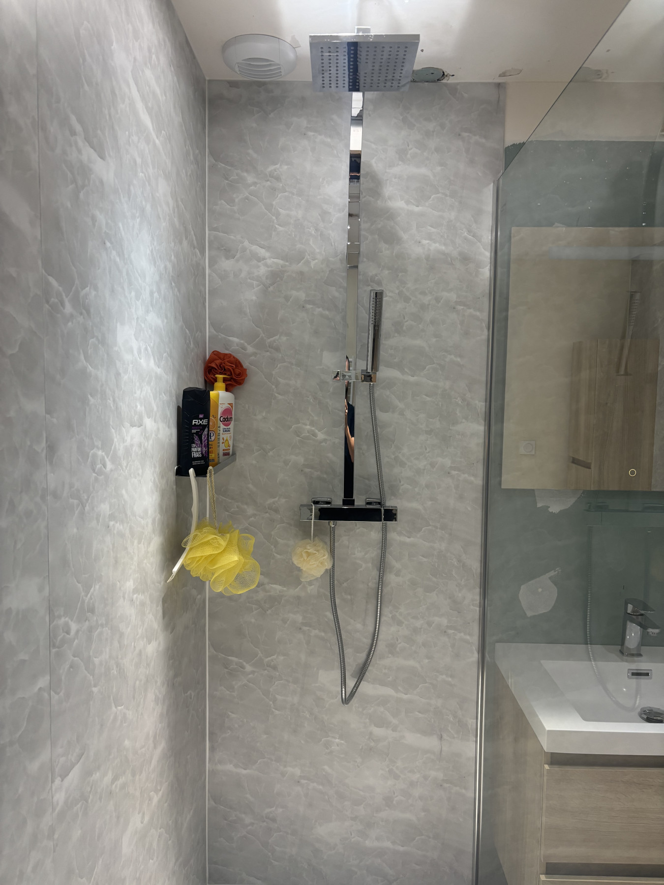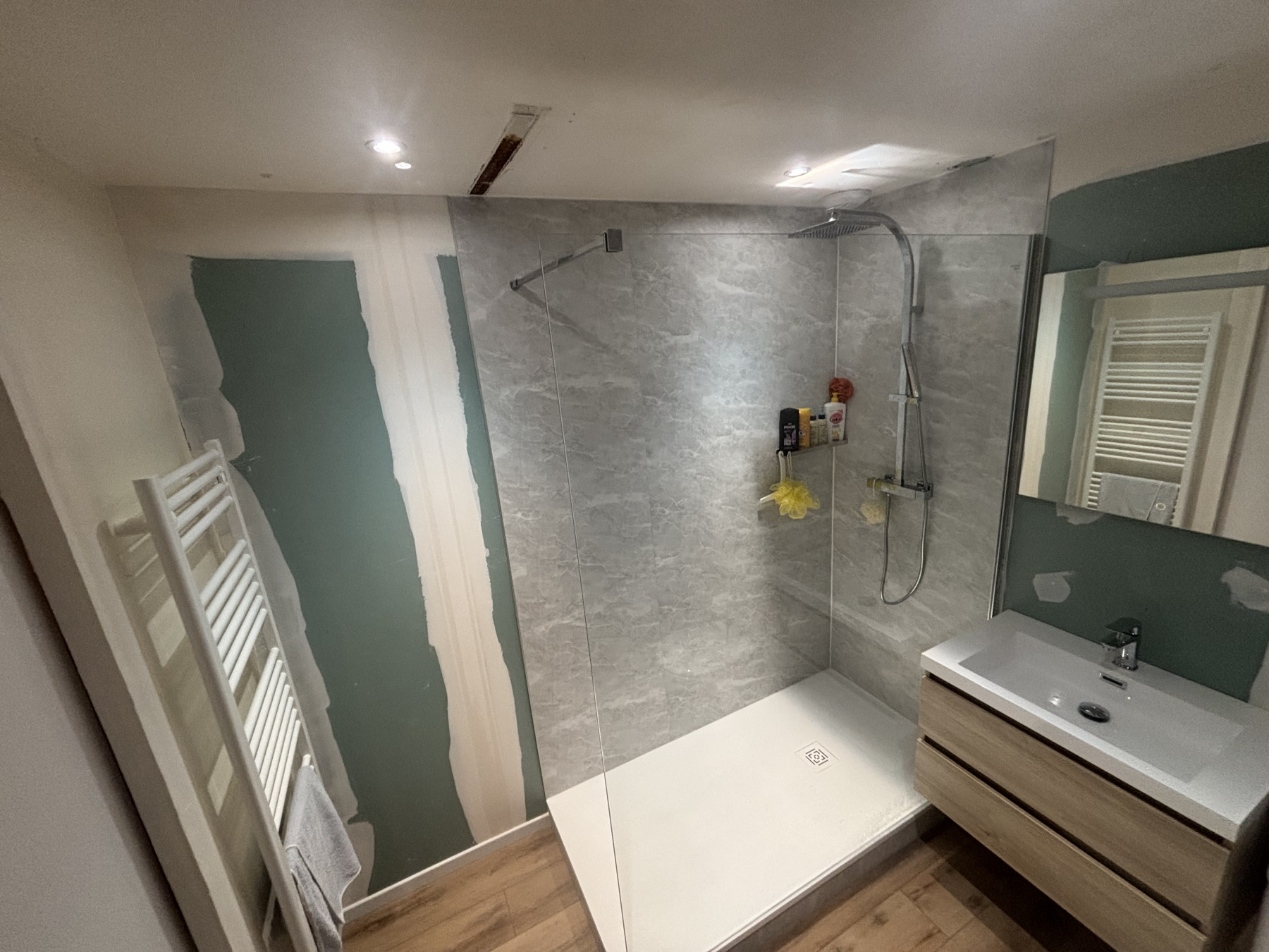 Un grand receveur moderne a été posé pour facilite l’accès et valorise la douche à l’italienne